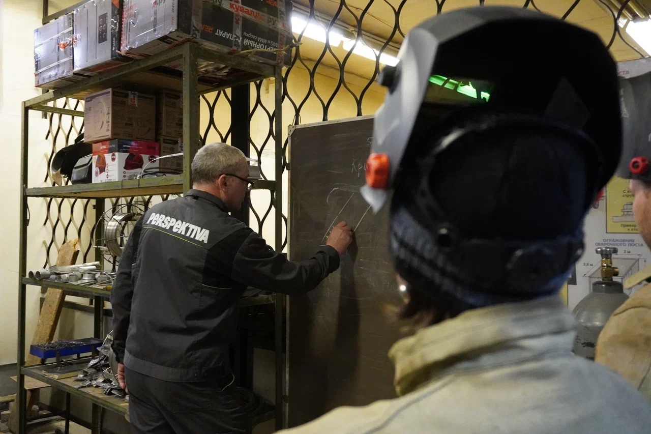 Практическое обучение проводится в сварочном цехе, где каждому обучающемуся предоставляется сварочный пост, костюм сварщика, маска, перчатки. Учатся «варить» будущие сварщики разные металлы и «разные объемы»: пластины различной толщины, трубы.